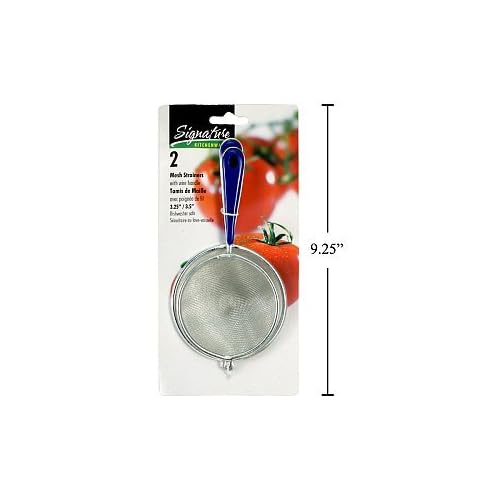 - Top quality fine mesh makes this strainer set as ideal for skimming light stock & fruit pulp as it is for draining super heavy loads of pasta and other weighty food materials.- Strong 15 lb stainless steel construction combined with an attractive stylish look makes these fine mesh strainers perfect for both professional kitchen performance and optimal kitchen appearance.- Convenient hanging holes on each of the fine mesh strainers make for quick and easy storage / access, on home and commercial kitchen storage racks.- Long handles on these worry-free stainless steel fine mesh strainers leave you assured that these strainers are as safe in a dishwasher as they are over a burning stove. - Enjoy hands-free straining using the broad, mirrored brims that comfortably sit on top of pots and other similar broth and fluid catching objects.the 2 Pieces Mesh Strainers with Wired Handles - 3.25 x 3.5 Inches Versatile and engineered for superior drainage, this product offers everything you need from a space saver kitchen strainer: wash or rinse fruits, vegetables, berries, herbs, meats and more. Drain pasta, rice or canned foods. 6-quart capacity makes large cooking jobs go faster. Optimal performance characteristics tested and certified. 2 Pieces Mesh Strainers with Wired Handles - 3.25 x 3.5 Inches is best for youFine mesh for thorough straining of juice, tea, and spiced drinks.