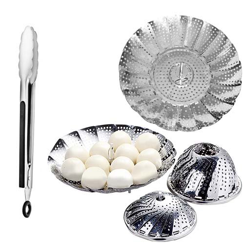 • The Vegetable Steamer Basket 3 Bundle Set By Culinary Edge - 100% Premium Stainless Steel Set- Bundle 2 Steamers 9 Inch, 11 Inch and 9 Inch Tong. is a