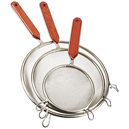 • The Cook Pro Stainless Steel Mesh Strainers with Wood Handles, Set of 3 is a