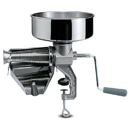 - Top quality fine mesh makes this strainer set as ideal for skimming light stock & fruit pulp as it is for draining super heavy loads of pasta and other weighty food materials.- Strong 15 lb stainless steel construction combined with an attractive stylish look makes these fine mesh strainers perfect for both professional kitchen performance and optimal kitchen appearance.- Convenient hanging holes on each of the fine mesh strainers make for quick and easy storage / access, on home and commercial kitchen storage racks.- Long handles on these worry-free stainless steel fine mesh strainers leave you assured that these strainers are as safe in a dishwasher as they are over a burning stove. - Enjoy hands-free straining using the broad, mirrored brims that comfortably sit on top of pots and other similar broth and fluid catching objects.the TSM Products 32158 No.3 Tomato Strainer, Gray Versatile and engineered for superior drainage, this product offers everything you need from a space saver kitchen strainer: wash or rinse fruits, vegetables, berries, herbs, meats and more. Drain pasta, rice or canned foods. 6-quart capacity makes large cooking jobs go faster. Optimal performance characteristics tested and certified. TSM Products 32158 No.3 Tomato Strainer, Gray is best for youDesigned for many years of performance, the number No.3 hand operated tomato strainer is the perfect kitchen tool for making homemade canned tomato sauce or for making your favorite fresh tomato sauce recipe. The strainer includes a stainless steel hopper, sauce collector and filter cone. The filter cone features 1.5mm Holes for filtering unwanted tomato seeds from the tomato puree. The unit also features a heavy duty cast iron frame, coated in a food grade epoxy, corrosive resistant finish. A built-in c-clamp is included for easy table mounting. Made in Italy. Hopper Dimensions: 8.75 Inch diameter x 3.25 Inches deep. Over-All dimensions: 10' l x 16.5' W x 9.5' H.