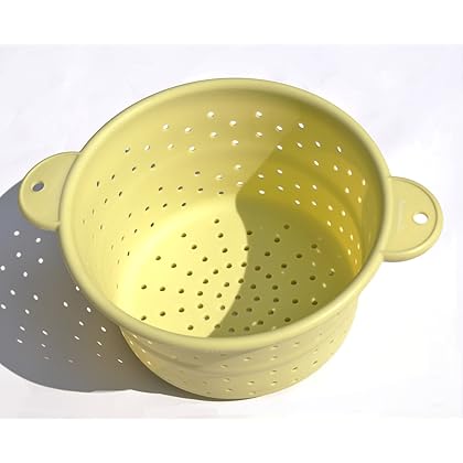 • The MelonBoat Silicone Collapsible Colander Steamer with Handles, Microwavable and Dishwasher Safe, Foldable Fruit Pasta Strainer, Yellow Green is a