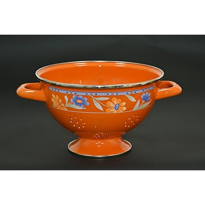 - Top quality fine mesh makes this strainer set as ideal for skimming light stock & fruit pulp as it is for draining super heavy loads of pasta and other weighty food materials.- Strong 15 lb stainless steel construction combined with an attractive stylish look makes these fine mesh strainers perfect for both professional kitchen performance and optimal kitchen appearance.- Convenient hanging holes on each of the fine mesh strainers make for quick and easy storage / access, on home and commercial kitchen storage racks.- Long handles on these worry-free stainless steel fine mesh strainers leave you assured that these strainers are as safe in a dishwasher as they are over a burning stove. - Enjoy hands-free straining using the broad, mirrored brims that comfortably sit on top of pots and other similar broth and fluid catching objects.the Orange 8 inch colander Versatile and engineered for superior drainage, this product offers everything you need from a space saver kitchen strainer: wash or rinse fruits, vegetables, berries, herbs, meats and more. Drain pasta, rice or canned foods. 6-quart capacity makes large cooking jobs go faster. Optimal performance characteristics tested and certified. Orange 8 inch colander is best for you2 quart 8 inch enamel colander. Made in Serbia