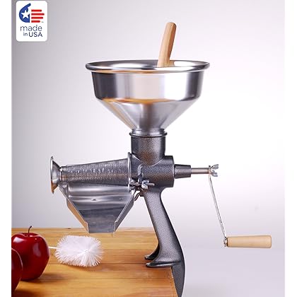 - Top quality fine mesh makes this strainer set as ideal for skimming light stock & fruit pulp as it is for draining super heavy loads of pasta and other weighty food materials.- Strong 15 lb stainless steel construction combined with an attractive stylish look makes these fine mesh strainers perfect for both professional kitchen performance and optimal kitchen appearance.- Convenient hanging holes on each of the fine mesh strainers make for quick and easy storage / access, on home and commercial kitchen storage racks.- Long handles on these worry-free stainless steel fine mesh strainers leave you assured that these strainers are as safe in a dishwasher as they are over a burning stove. - Enjoy hands-free straining using the broad, mirrored brims that comfortably sit on top of pots and other similar broth and fluid catching objects.the Squeezo Strainer Versatile and engineered for superior drainage, this product offers everything you need from a space saver kitchen strainer: wash or rinse fruits, vegetables, berries, herbs, meats and more. Drain pasta, rice or canned foods. 6-quart capacity makes large cooking jobs go faster. Optimal performance characteristics tested and certified. Squeezo Strainer is best for youThe All Metal Squeezo® Strainer made by Best Products today is the same as the old Garden Way Squeezo® Strainer later made by Lemra Products. Made the same as it was 25-30 years ago and NOW all Made in the USA. No peeling or coring is necessary! Simply place your tomatoes, berries, steamed apples or vegetables in the 2 + quart hopper, push the fruit or vegetables into the Squeezo® with the wooden plunger, and turn the handle . . . then watch as the sauce and juice pours down the drain tray into your bowl, free of seeds and skins! The seeds and skins are discharged into a separate bowl. No Plastic Parts to Stain or Retain Odors! The 'All Metal' Squeezo® has a die-cast aluminum scroll and an aluminum hopper, so it will not discolor, lose its shape or retain odors. The only non-metal parts are a rubber gasket and nylon bushing. All parts are replaceable. The Squeezo® is made to last a lifetime and is designed to get the most juice and puree with the least amount of effort. In a short-period of time, the Squeezo® can turn a large harvest into juices, sauces, jams and jellies that can be canned or purees that can be frozen for later use. Great for making baby food too! The Squeezo® Strainer comes complete with a Stainless Steel Standard Screen, Wooden Plunger, Brush and Recipe/Instructions Booklet. The Squeezo® Strainer is Not Recommended for Grapes!
