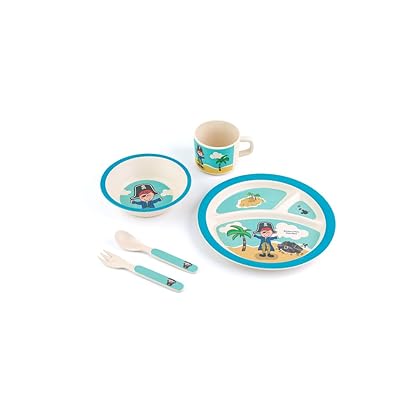 • The Peterson Housewares BF0263029S 5 Piece Kids Dinnerware Bamboo Fibre Set, Blue Pirate is a