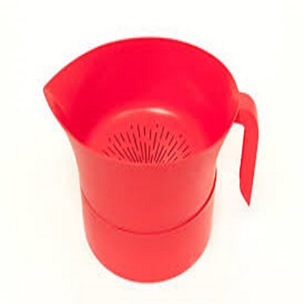 • The Easy Greasy Hands Free Strainer Colander with lid Red is a