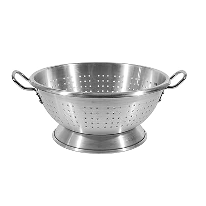 - Top quality fine mesh makes this strainer set as ideal for skimming light stock & fruit pulp as it is for draining super heavy loads of pasta and other weighty food materials.- Strong 15 lb stainless steel construction combined with an attractive stylish look makes these fine mesh strainers perfect for both professional kitchen performance and optimal kitchen appearance.- Convenient hanging holes on each of the fine mesh strainers make for quick and easy storage / access, on home and commercial kitchen storage racks.- Long handles on these worry-free stainless steel fine mesh strainers leave you assured that these strainers are as safe in a dishwasher as they are over a burning stove. - Enjoy hands-free straining using the broad, mirrored brims that comfortably sit on top of pots and other similar broth and fluid catching objects.the Town Food Service 37324 24 Qt. Heavy Duty Colander by Town Equipment Versatile and engineered for superior drainage, this product offers everything you need from a space saver kitchen strainer: wash or rinse fruits, vegetables, berries, herbs, meats and more. Drain pasta, rice or canned foods. 6-quart capacity makes large cooking jobs go faster. Optimal performance characteristics tested and certified. Town Food Service 37324 24 Qt. Heavy Duty Colander by Town Equipment is best for youThis Town Food Service Colander has a generous 24 Qt. capacity and is made from heavy aluminum with a thick aluminum base. This colander makes a great addition to any food service operation.24 Qt. capacity 1/8' aluminum body Thick aluminum base Diameter: 16.25' Height: 10' Model #: 37324 745232