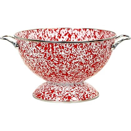 - Top quality fine mesh makes this strainer set as ideal for skimming light stock & fruit pulp as it is for draining super heavy loads of pasta and other weighty food materials.- Strong 15 lb stainless steel construction combined with an attractive stylish look makes these fine mesh strainers perfect for both professional kitchen performance and optimal kitchen appearance.- Convenient hanging holes on each of the fine mesh strainers make for quick and easy storage / access, on home and commercial kitchen storage racks.- Long handles on these worry-free stainless steel fine mesh strainers leave you assured that these strainers are as safe in a dishwasher as they are over a burning stove. - Enjoy hands-free straining using the broad, mirrored brims that comfortably sit on top of pots and other similar broth and fluid catching objects.the Calypso Basics 80960 Enamel on Steel Colander, 3 quart, Red Versatile and engineered for superior drainage, this product offers everything you need from a space saver kitchen strainer: wash or rinse fruits, vegetables, berries, herbs, meats and more. Drain pasta, rice or canned foods. 6-quart capacity makes large cooking jobs go faster. Optimal performance characteristics tested and certified. Calypso Basics 80960 Enamel on Steel Colander, 3 quart, Red is best for youA colander or strainer is one of the basic kitchen essentials in every home. This standard three quart colander is very durable and offers you a modernly vintage look to your kitchen. First the colander is made of a heavy duty enamel on steel coating that will not flake off but stay true to its color and design for many, many years. Two side handles which are chrome plated also help give this everyday item a bit of sparkle and class. Sponge ware painting has been around for a very long time. However it's been hard to incorporate this painted technique with the current color trends. Now you can enjoy a more vintage look but in your more modern colors such as orange, turquoise, lime and red! Mix and match from the modernly vintage line of colanders, stock pots, utensil holders and more to expand your collection. You will find that this colander will not only work for your hot and cold prep needs but you can keep it out on your counter as a fun fruit bowl.