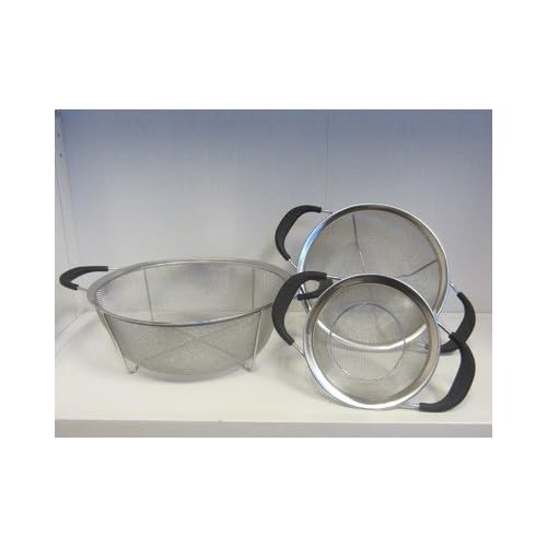• The 3 Piece Stainless Steel Mesh Colander Set is a
