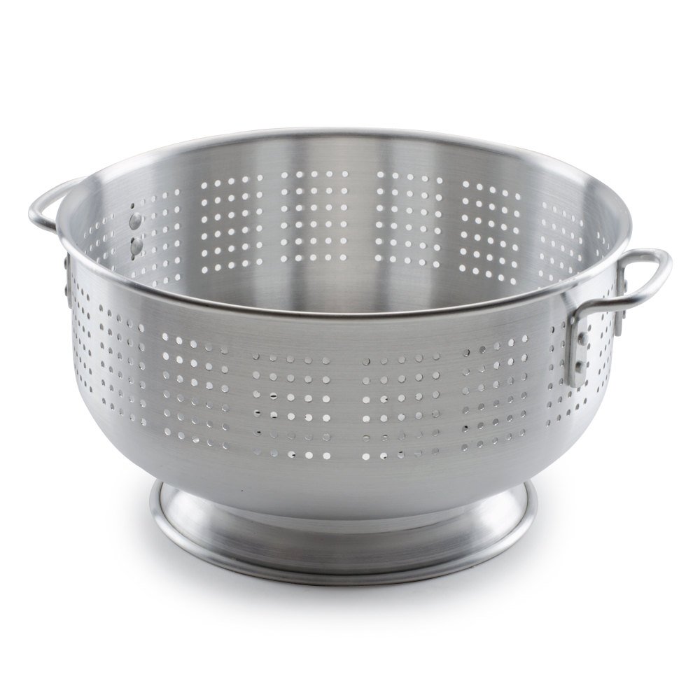 - Top quality fine mesh makes this strainer set as ideal for skimming light stock & fruit pulp as it is for draining super heavy loads of pasta and other weighty food materials.- Strong 15 lb stainless steel construction combined with an attractive stylish look makes these fine mesh strainers perfect for both professional kitchen performance and optimal kitchen appearance.- Convenient hanging holes on each of the fine mesh strainers make for quick and easy storage / access, on home and commercial kitchen storage racks.- Long handles on these worry-free stainless steel fine mesh strainers leave you assured that these strainers are as safe in a dishwasher as they are over a burning stove. - Enjoy hands-free straining using the broad, mirrored brims that comfortably sit on top of pots and other similar broth and fluid catching objects.the Colander 16 qt Versatile and engineered for superior drainage, this product offers everything you need from a space saver kitchen strainer: wash or rinse fruits, vegetables, berries, herbs, meats and more. Drain pasta, rice or canned foods. 6-quart capacity makes large cooking jobs go faster. Optimal performance characteristics tested and certified. Colander 16 qt is best for you* Constructed from heavy duty, 2 mm thick 3004 series aluminum * Full ring base