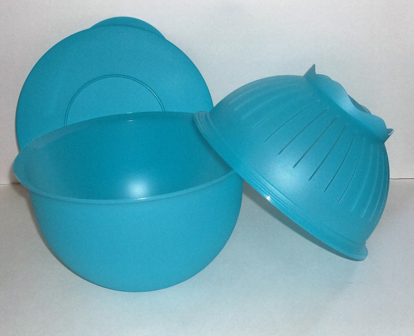 • The Tupperware Impressions 3 Quart Large Bowl and Colander Strainer Set Aqua Blue is a