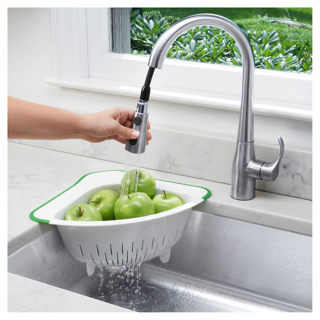 • The OXO SoftWorks Over-The-Corner Colander 3.5 quart is a
