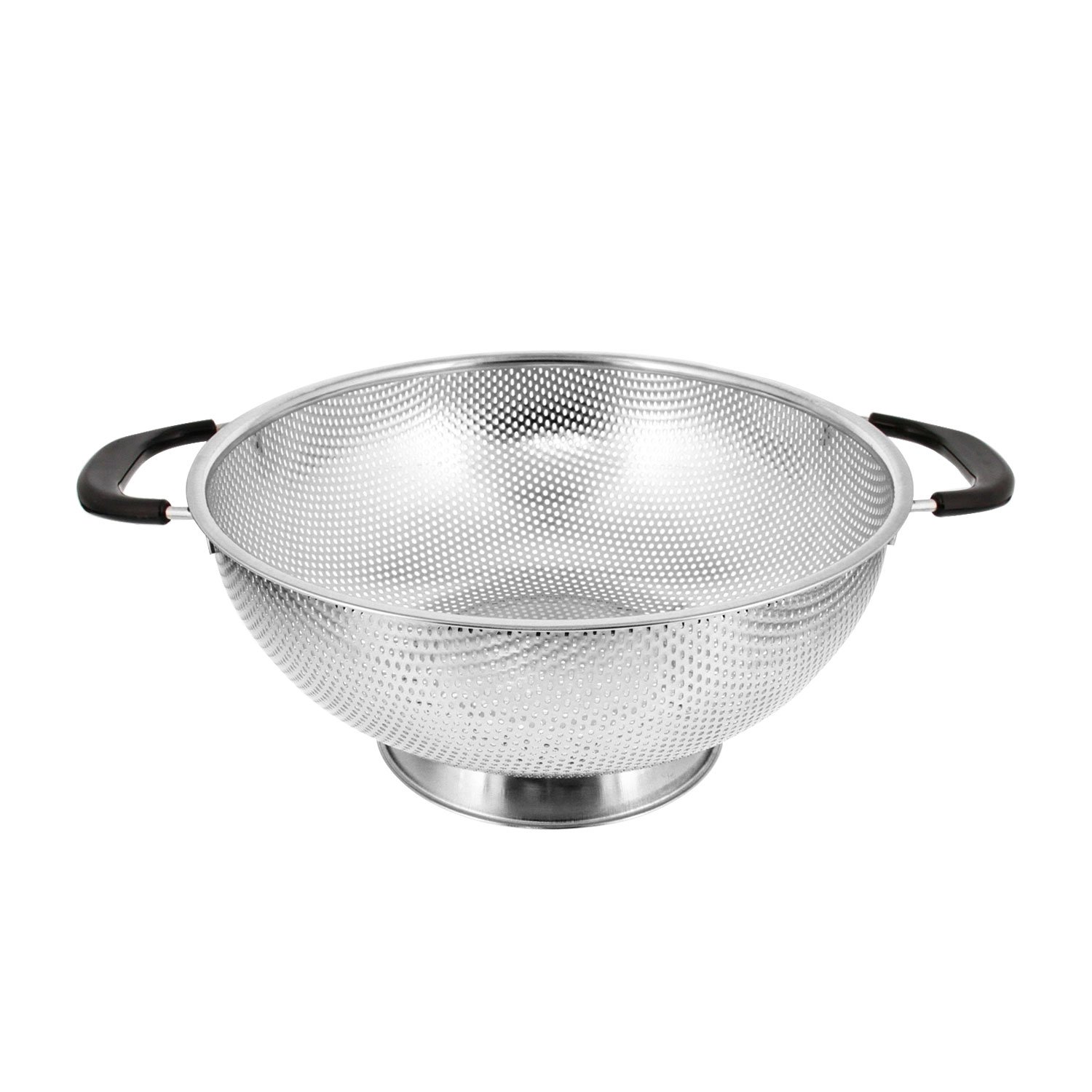 • The U.S. Kitchen Supply 5 Quart 11" Stainless Steel Micro Perforated Colander Strainer Basket with Coated Heat Resistant Wide Handles - Bowl to Strain, Drain, Rinse, Steam or Cook Vegetables & Pasta is a