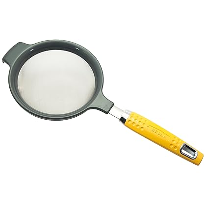 - Top quality fine mesh makes this strainer set as ideal for skimming light stock & fruit pulp as it is for draining super heavy loads of pasta and other weighty food materials.- Strong 15 lb stainless steel construction combined with an attractive stylish look makes these fine mesh strainers perfect for both professional kitchen performance and optimal kitchen appearance.- Convenient hanging holes on each of the fine mesh strainers make for quick and easy storage / access, on home and commercial kitchen storage racks.- Long handles on these worry-free stainless steel fine mesh strainers leave you assured that these strainers are as safe in a dishwasher as they are over a burning stove. - Enjoy hands-free straining using the broad, mirrored brims that comfortably sit on top of pots and other similar broth and fluid catching objects.the Bella 1207-0 Strainer with Metallic-Look Handle, Yellow Versatile and engineered for superior drainage, this product offers everything you need from a space saver kitchen strainer: wash or rinse fruits, vegetables, berries, herbs, meats and more. Drain pasta, rice or canned foods. 6-quart capacity makes large cooking jobs go faster. Optimal performance characteristics tested and certified. Bella 1207-0 Strainer with Metallic-Look Handle, Yellow is best for youBella products feature an array of unique features that sets them in a class all of their own. Our tools are designed with the 21st Century consumer in mind, so each tool is meaningfully manufactured and has a distinct purpose in the kitchen. They are heat resistant, safe on non-stick pans and are dishwasher safe. The tools are a great value, with unsurpassed quality at a reasonable price. The line makes a statement about what you create and cook.