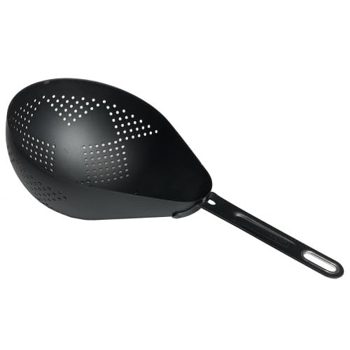 - Top quality fine mesh makes this strainer set as ideal for skimming light stock & fruit pulp as it is for draining super heavy loads of pasta and other weighty food materials.- Strong 15 lb stainless steel construction combined with an attractive stylish look makes these fine mesh strainers perfect for both professional kitchen performance and optimal kitchen appearance.- Convenient hanging holes on each of the fine mesh strainers make for quick and easy storage / access, on home and commercial kitchen storage racks.- Long handles on these worry-free stainless steel fine mesh strainers leave you assured that these strainers are as safe in a dishwasher as they are over a burning stove. - Enjoy hands-free straining using the broad, mirrored brims that comfortably sit on top of pots and other similar broth and fluid catching objects.the Typhoon Non-stick Scoop Colander Versatile and engineered for superior drainage, this product offers everything you need from a space saver kitchen strainer: wash or rinse fruits, vegetables, berries, herbs, meats and more. Drain pasta, rice or canned foods. 6-quart capacity makes large cooking jobs go faster. Optimal performance characteristics tested and certified. Typhoon Non-stick Scoop Colander is best for youProbon coated non stick carbon steel colander with single handle
