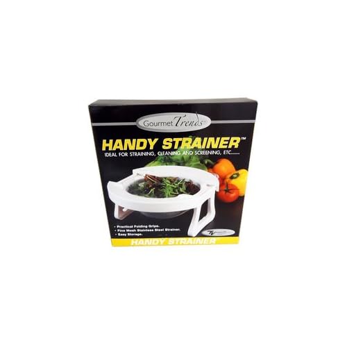 - Top quality fine mesh makes this strainer set as ideal for skimming light stock & fruit pulp as it is for draining super heavy loads of pasta and other weighty food materials.- Strong 15 lb stainless steel construction combined with an attractive stylish look makes these fine mesh strainers perfect for both professional kitchen performance and optimal kitchen appearance.- Convenient hanging holes on each of the fine mesh strainers make for quick and easy storage / access, on home and commercial kitchen storage racks.- Long handles on these worry-free stainless steel fine mesh strainers leave you assured that these strainers are as safe in a dishwasher as they are over a burning stove. - Enjoy hands-free straining using the broad, mirrored brims that comfortably sit on top of pots and other similar broth and fluid catching objects.the Gourmet Trends 00528G-6 Gourmet Trends Handy Strainer - Pack of 6 Versatile and engineered for superior drainage, this product offers everything you need from a space saver kitchen strainer: wash or rinse fruits, vegetables, berries, herbs, meats and more. Drain pasta, rice or canned foods. 6-quart capacity makes large cooking jobs go faster. Optimal performance characteristics tested and certified. Gourmet Trends 00528G-6 Gourmet Trends Handy Strainer - Pack of 6 is best for youGourmet Trends Handy Strainer. Ideal for straining cleaning screening. Features practical folding grips. Fine mesh stainless steel strainer. Adjustable hinged handles for many uses. Measures approximately 8-3/4 in x 9-1/4 in. Case pack: 6.