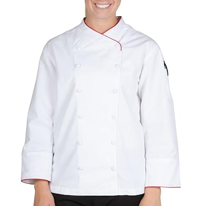 • The Chef Revival LJ008RD-XL Chef Tex Poly Cotton Long Sleeve Ladies Corporate Jacket with Red Piping, X-Large, White is a