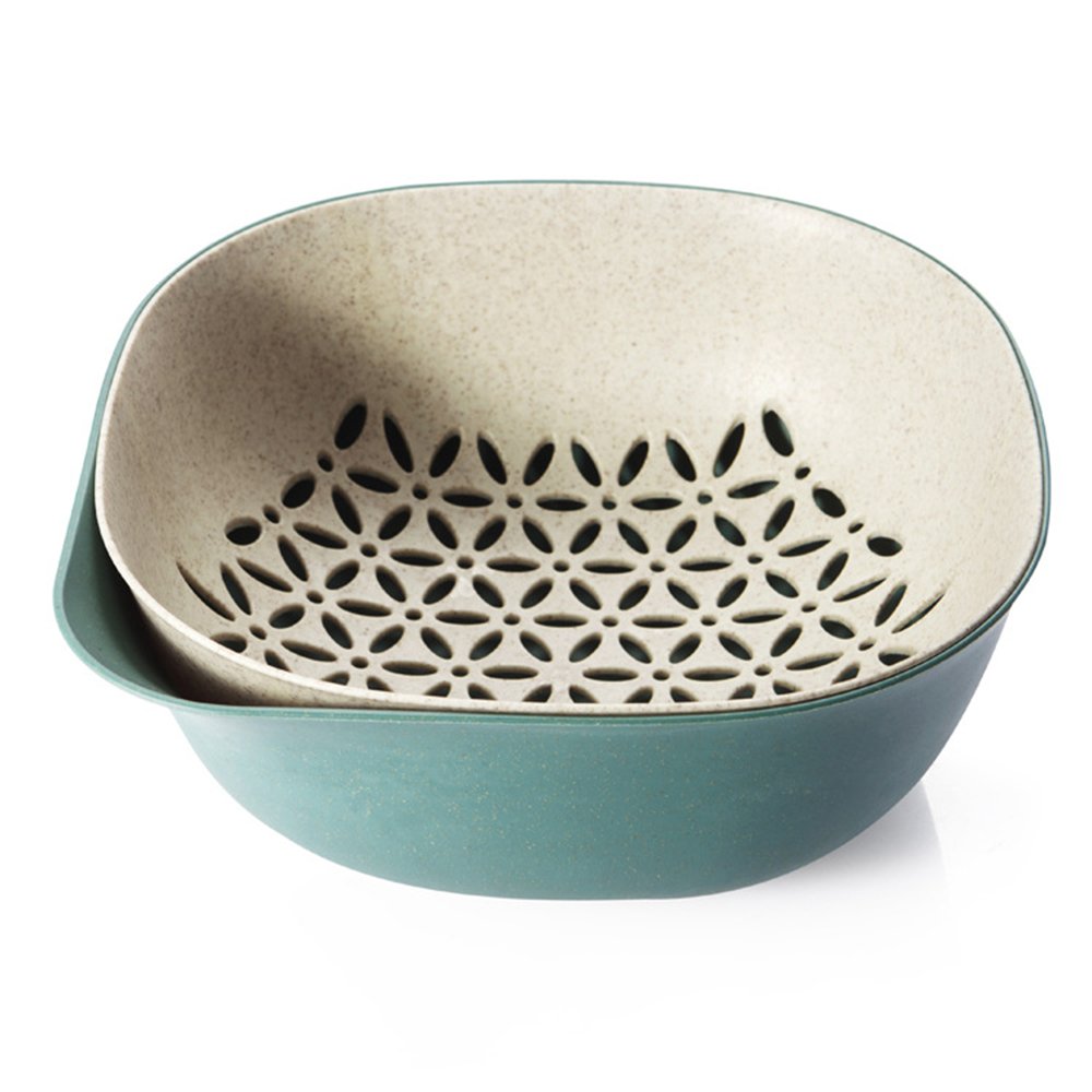 • The Double Layer Fruit and Vegetable Strainer - Strainer & Eco-Friendly BPA-Free Container with Fine Mesh Colanders (Army green) is a
