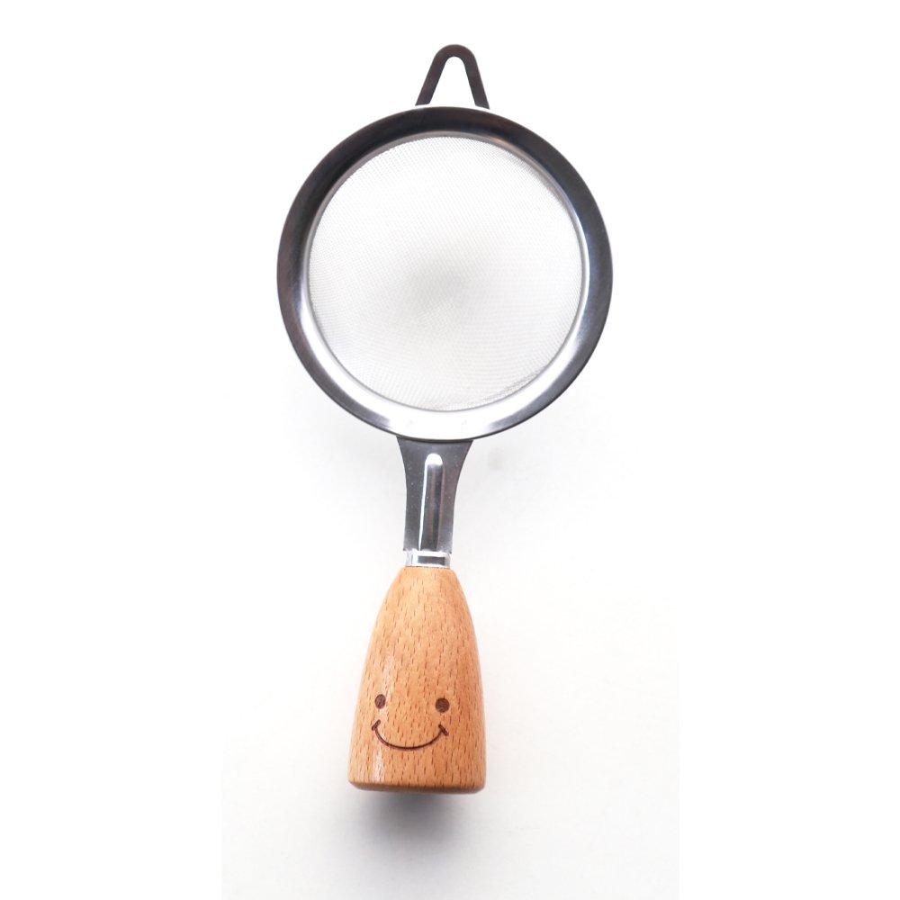 • The Live-R Smile Face Japanese Wooden Handle Stainless Steel Skimmer/Strainer is a
