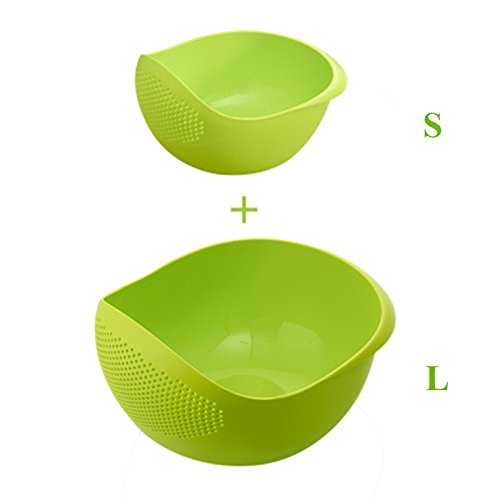 - Top quality fine mesh makes this strainer set as ideal for skimming light stock & fruit pulp as it is for draining super heavy loads of pasta and other weighty food materials.- Strong 15 lb stainless steel construction combined with an attractive stylish look makes these fine mesh strainers perfect for both professional kitchen performance and optimal kitchen appearance.- Convenient hanging holes on each of the fine mesh strainers make for quick and easy storage / access, on home and commercial kitchen storage racks.- Long handles on these worry-free stainless steel fine mesh strainers leave you assured that these strainers are as safe in a dishwasher as they are over a burning stove. - Enjoy hands-free straining using the broad, mirrored brims that comfortably sit on top of pots and other similar broth and fluid catching objects.the Huayoung Plastic Fruit Baskets Rice Washing Bowls Multifunctional Colanders-Pack of 2 (Green) Versatile and engineered for superior drainage, this product offers everything you need from a space saver kitchen strainer: wash or rinse fruits, vegetables, berries, herbs, meats and more. Drain pasta, rice or canned foods. 6-quart capacity makes large cooking jobs go faster. Optimal performance characteristics tested and certified. Huayoung Plastic Fruit Baskets Rice Washing Bowls Multifunctional Colanders-Pack of 2 (Green) is best for youColor:Green Material: Plastic Colors: Blue/Green/Pink Size: L: 28*22*15cm S: 22*17*12cm Usage: Perfect for filtering rice, beans etc. Net weight: 110g Shipping weight: 0.5kg Features: 1. Multifunctional Colander, made from high-quality PP, safe and durable 2. Multifunctional: Can be used as rice washer, strainer, mixing bowl etc. 3. The filtering net makes it perfect to wash rice, vegetable etc. 4. The specially designed surface is comfortable to hold 5. Pack of 2 in Large & Small Size