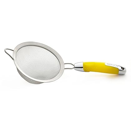 - Top quality fine mesh makes this strainer set as ideal for skimming light stock & fruit pulp as it is for draining super heavy loads of pasta and other weighty food materials.- Strong 15 lb stainless steel construction combined with an attractive stylish look makes these fine mesh strainers perfect for both professional kitchen performance and optimal kitchen appearance.- Convenient hanging holes on each of the fine mesh strainers make for quick and easy storage / access, on home and commercial kitchen storage racks.- Long handles on these worry-free stainless steel fine mesh strainers leave you assured that these strainers are as safe in a dishwasher as they are over a burning stove. - Enjoy hands-free straining using the broad, mirrored brims that comfortably sit on top of pots and other similar broth and fluid catching objects.the Zeroll Ussentials 8820LY Strainer 6-Inch, Lemon Yellow Versatile and engineered for superior drainage, this product offers everything you need from a space saver kitchen strainer: wash or rinse fruits, vegetables, berries, herbs, meats and more. Drain pasta, rice or canned foods. 6-quart capacity makes large cooking jobs go faster. Optimal performance characteristics tested and certified. Zeroll Ussentials 8820LY Strainer 6-Inch, Lemon Yellow is best for youAttention to detail and quality craftsmanship separate the Ussentials Strainer from the rest. Designed with a wide stainless steel brim and loop, the strainer can sit on top of standard size pots leaving your hands free. It's fine mesh is ideal for working with thin pasta or removing spent vegetables from sauces and can be used to make your own non fat yogurt. The Ussentials strainer makes any job easier and guarantees a spill free kitchen thanks to a no slip soft grip handle that comes standard with the Ussentials line.