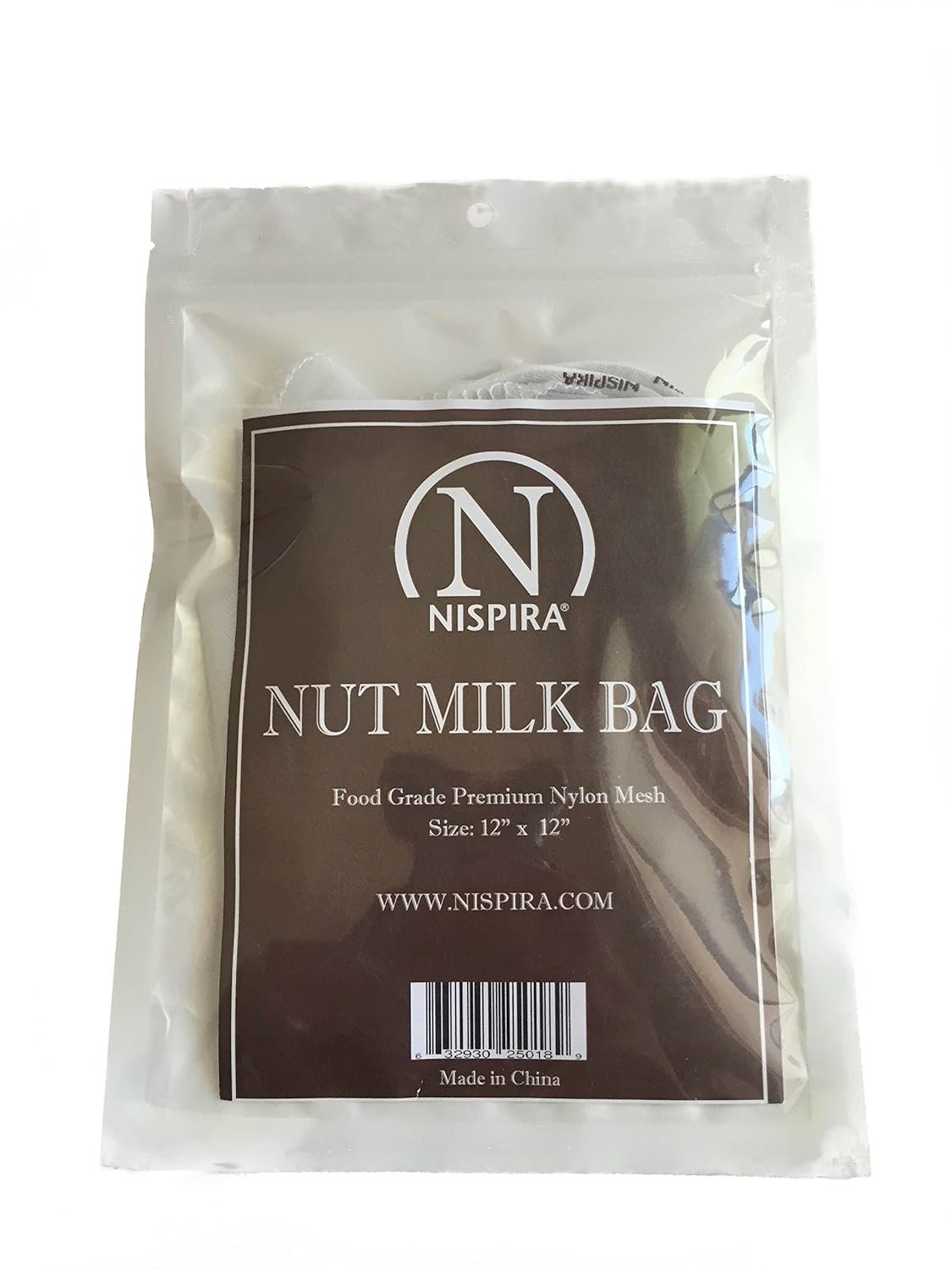• The NISPIRA Premium Super Fine Mesh Nut Milk Bag Strainer for Almond Milk, Soy Milk, Any Nut and Beans Drinks 12" x 12" is a