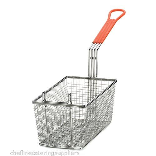 - Top quality fine mesh makes this strainer set as ideal for skimming light stock & fruit pulp as it is for draining super heavy loads of pasta and other weighty food materials.- Strong 15 lb stainless steel construction combined with an attractive stylish look makes these fine mesh strainers perfect for both professional kitchen performance and optimal kitchen appearance.- Convenient hanging holes on each of the fine mesh strainers make for quick and easy storage / access, on home and commercial kitchen storage racks.- Long handles on these worry-free stainless steel fine mesh strainers leave you assured that these strainers are as safe in a dishwasher as they are over a burning stove. - Enjoy hands-free straining using the broad, mirrored brims that comfortably sit on top of pots and other similar broth and fluid catching objects.the Tablecraft 43 Rectangular Fry Basket with Mesh, Nickel Plated Versatile and engineered for superior drainage, this product offers everything you need from a space saver kitchen strainer: wash or rinse fruits, vegetables, berries, herbs, meats and more. Drain pasta, rice or canned foods. 6-quart capacity makes large cooking jobs go faster. Optimal performance characteristics tested and certified. Tablecraft 43 Rectangular Fry Basket with Mesh, Nickel Plated is best for youCommercial Orange fry basket, mesh, nickel plated with cool to touch color coated handles, Dishwasher safe.