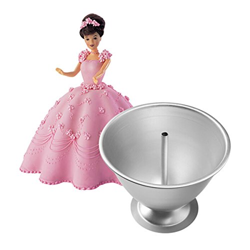 avid bakers find themselves in this predicament frequently and can attest to the fact that having a safe transportation container is key! the Bundt cake keeper is the perfect solution to this age-old problem. Place your freshly-baked Bundt cake inside, set the cover on top and twist to lock the cake safely inside. You're now ready for transportation to and from a party. Best of all, the cake keeper will keep your cakes fresh and looks great sitting on your countertop. The cake keeper is very durable and can be put through your dishwasher for simple cleanup. Base comes in assorted colors. BPA- and melamine-free plastic.the DIY Princess Cake Mold Barbie Princess Girl Birthday Cake Mold Spoon the batter into the pan slowly to prevent the formation of air bubbles. Tap the pan 3 times gently on a work surface to release any bubbles that may have developed and ensure the batter reaches all crevices in the design. Using a rubber or silicone spatula, spread the batter so the sides are slightly higher than the center. The cake will bake more evenly and be less likely to form peaks.Our beloved Bundts are produced with lots of hand touch and care, ensuring that they will last for a lifetime. We've perfected this process over the past seven decades--there is a lot of science behind created the best Bundts on earth! At the die casting facility, molten aluminum at temperatures of over 1200 degrees F is ladled into a chamber where an arm rapidly pushes the liquid aluminum into the die (mold). This takes place in a fraction of a second, and the aluminum solidifies as it hits the cooler mold. The two halves of the mold open up, releasing a very hot but solid aluminum Bundt pan.DIY Princess Cake Mold Barbie Princess Girl Birthday Cake Mold is best for youDescription: Reusable- durable- non-stick. Use and clean easily. Convenient-disposable-lovely and generous. Perfect for putting cakes- cupcakes-cookie and so on. Very cute Barbie princess cake mold-it would be your daughter's best love. Suitable for wedding- anniversary- engagement- birthday- or Christmas events. The princess arms can be remove off- for it has magnet in it. The princess head should be plug in the the bottom of the cup-as you seen the picture pluged in the top is for the convenience of taking photo. Features & details: Material: Aluminum Size: 6 inch Weight: About 140g Style: The princess head random delivery Package included: 1x Princess Cake Mold 1x princess head Usage: 1.When you have preparing all the material of making the cake- you can preheat the oven to 160 degrees and 6-inch round mold needs 30-35 minutes. 2.Put the cake mold into the oven- after 35 minutes later taking out of it. If you are not sure whether it’s cooked you can get a little long thin stick inserted in center of cake to check it. 3.After the cake is baked- take out of it and upside down to let it cool. 4.Using a spatula butter smeared on the skirt evenly- and you had better coat it twice. 5.After wiping cream skirt- plug dolls- but note that t is not food grade- please contact Barbie cake wrapped in plastic wrap. 6.Finally using the decorating mouth to decorate the skirt whatever you like. Notice: Please allow 1-3mm error due to manual measurement and make sure you do not mind before ordering. Please understand that colors may exist chromatic aberration as the different placement of pictures.