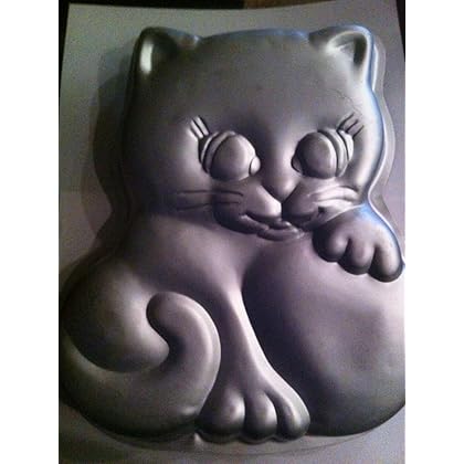 avid bakers find themselves in this predicament frequently and can attest to the fact that having a safe transportation container is key! the Bundt cake keeper is the perfect solution to this age-old problem. Place your freshly-baked Bundt cake inside, set the cover on top and twist to lock the cake safely inside. You're now ready for transportation to and from a party. Best of all, the cake keeper will keep your cakes fresh and looks great sitting on your countertop. The cake keeper is very durable and can be put through your dishwasher for simple cleanup. Base comes in assorted colors. BPA- and melamine-free plastic.the 1979 Wilton Cat Kitten Kitty Cake Pan 502 1972 Spoon the batter into the pan slowly to prevent the formation of air bubbles. Tap the pan 3 times gently on a work surface to release any bubbles that may have developed and ensure the batter reaches all crevices in the design. Using a rubber or silicone spatula, spread the batter so the sides are slightly higher than the center. The cake will bake more evenly and be less likely to form peaks.Our beloved Bundts are produced with lots of hand touch and care, ensuring that they will last for a lifetime. We've perfected this process over the past seven decades--there is a lot of science behind created the best Bundts on earth! At the die casting facility, molten aluminum at temperatures of over 1200 degrees F is ladled into a chamber where an arm rapidly pushes the liquid aluminum into the die (mold). This takes place in a fraction of a second, and the aluminum solidifies as it hits the cooler mold. The two halves of the mold open up, releasing a very hot but solid aluminum Bundt pan.1979 Wilton Cat Kitten Kitty Cake Pan 502 1972 is best for youCat cake pan