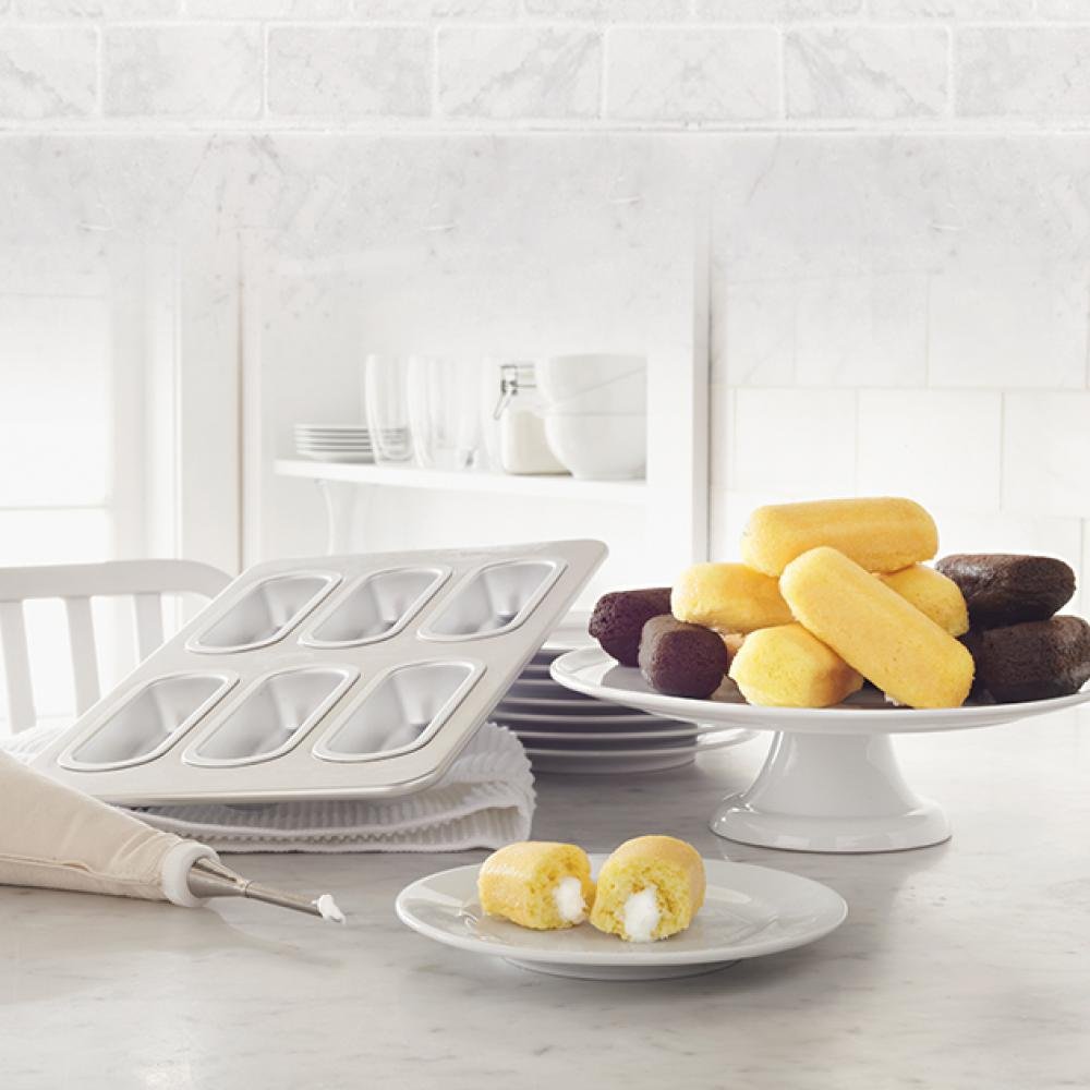 avid bakers find themselves in this predicament frequently and can attest to the fact that having a safe transportation container is key! the Bundt cake keeper is the perfect solution to this age-old problem. Place your freshly-baked Bundt cake inside, set the cover on top and twist to lock the cake safely inside. You're now ready for transportation to and from a party. Best of all, the cake keeper will keep your cakes fresh and looks great sitting on your countertop. The cake keeper is very durable and can be put through your dishwasher for simple cleanup. Base comes in assorted colors. BPA- and melamine-free plastic.the Fat Daddio's Oblong Shape Snack Pan - 6 Cavities Spoon the batter into the pan slowly to prevent the formation of air bubbles. Tap the pan 3 times gently on a work surface to release any bubbles that may have developed and ensure the batter reaches all crevices in the design. Using a rubber or silicone spatula, spread the batter so the sides are slightly higher than the center. The cake will bake more evenly and be less likely to form peaks.Our beloved Bundts are produced with lots of hand touch and care, ensuring that they will last for a lifetime. We've perfected this process over the past seven decades--there is a lot of science behind created the best Bundts on earth! At the die casting facility, molten aluminum at temperatures of over 1200 degrees F is ladled into a chamber where an arm rapidly pushes the liquid aluminum into the die (mold). This takes place in a fraction of a second, and the aluminum solidifies as it hits the cooler mold. The two halves of the mold open up, releasing a very hot but solid aluminum Bundt pan.Fat Daddio's Oblong Shape Snack Pan - 6 Cavities is best for youCreate classic Americana-style treats at home. These PROSERIES pans are also great for éclairs, hot dog rolls, sponge cakes and muffins. Great for use in the freezer, refrigerator or oven. Non-reactive, anodized aluminum creates an ideal mold for mousse, gelatin and ice cream. The reinforced rolled rim improves durability and handling. Anodized aluminum Easy release and clean up Heats faster and cools quicker Will NEVER rust, flake, peel, or chip Hand wash recommended