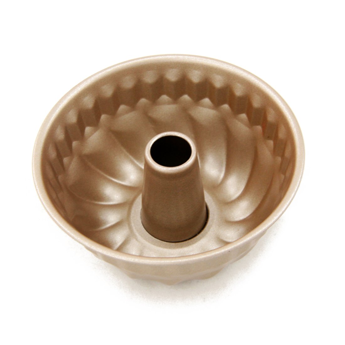 avid bakers find themselves in this predicament frequently and can attest to the fact that having a safe transportation container is key! the Bundt cake keeper is the perfect solution to this age-old problem. Place your freshly-baked Bundt cake inside, set the cover on top and twist to lock the cake safely inside. You're now ready for transportation to and from a party. Best of all, the cake keeper will keep your cakes fresh and looks great sitting on your countertop. The cake keeper is very durable and can be put through your dishwasher for simple cleanup. Base comes in assorted colors. BPA- and melamine-free plastic.the uxcell Carbon Stainless Steel Casa-J Bakeware Nonstick Round Cake Pans 4 Inch Spoon the batter into the pan slowly to prevent the formation of air bubbles. Tap the pan 3 times gently on a work surface to release any bubbles that may have developed and ensure the batter reaches all crevices in the design. Using a rubber or silicone spatula, spread the batter so the sides are slightly higher than the center. The cake will bake more evenly and be less likely to form peaks.Our beloved Bundts are produced with lots of hand touch and care, ensuring that they will last for a lifetime. We've perfected this process over the past seven decades--there is a lot of science behind created the best Bundts on earth! At the die casting facility, molten aluminum at temperatures of over 1200 degrees F is ladled into a chamber where an arm rapidly pushes the liquid aluminum into the die (mold). This takes place in a fraction of a second, and the aluminum solidifies as it hits the cooler mold. The two halves of the mold open up, releasing a very hot but solid aluminum Bundt pan.uxcell Carbon Stainless Steel Casa-J Bakeware Nonstick Round Cake Pans 4 Inch is best for youThis collection features our exclusive premium non-stick coating, which provides quick, easy release of baked goods.Multifunctional, one mold can make many cakes.Carbon steel material to prevent warping and allow even heat distribution for exceptional baking results,112g, the heaviest mold of the Internet.Champagne Gold Tone design, with the smooth surface and shine of Quantum 2.Note:1.Please check the measurement chart carefully before you buy the item.2.The real color of the item may be slightly different from the pictures shown on website caused by many factors,such as brightness of your monitor and light brightness when photo taking.3.Metal baking mold unavoidably has scratch, but it does not affect the actual use. We had tried to protect it carefully on the packaging.4.To avoid the scratch, mold is pacakged by the hard case and fixed with traceless glue stick.You need to slightly forth your strength to open it.