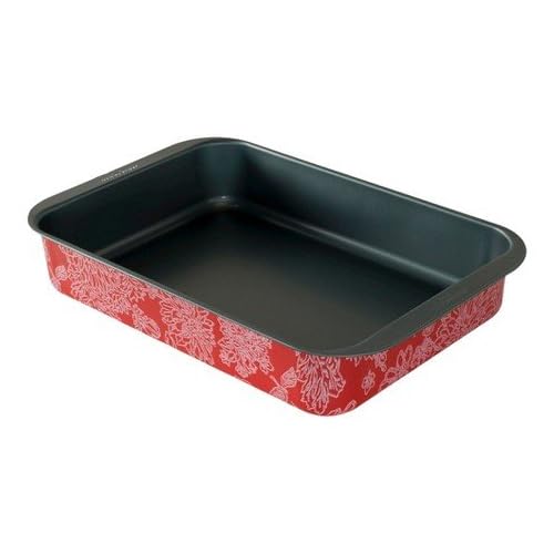 avid bakers find themselves in this predicament frequently and can attest to the fact that having a safe transportation container is key! the Bundt cake keeper is the perfect solution to this age-old problem. Place your freshly-baked Bundt cake inside, set the cover on top and twist to lock the cake safely inside. You're now ready for transportation to and from a party. Best of all, the cake keeper will keep your cakes fresh and looks great sitting on your countertop. The cake keeper is very durable and can be put through your dishwasher for simple cleanup. Base comes in assorted colors. BPA- and melamine-free plastic.the Threshold™ Cake Pan Spoon the batter into the pan slowly to prevent the formation of air bubbles. Tap the pan 3 times gently on a work surface to release any bubbles that may have developed and ensure the batter reaches all crevices in the design. Using a rubber or silicone spatula, spread the batter so the sides are slightly higher than the center. The cake will bake more evenly and be less likely to form peaks.Our beloved Bundts are produced with lots of hand touch and care, ensuring that they will last for a lifetime. We've perfected this process over the past seven decades--there is a lot of science behind created the best Bundts on earth! At the die casting facility, molten aluminum at temperatures of over 1200 degrees F is ladled into a chamber where an arm rapidly pushes the liquid aluminum into the die (mold). This takes place in a fraction of a second, and the aluminum solidifies as it hits the cooler mold. The two halves of the mold open up, releasing a very hot but solid aluminum Bundt pan.Threshold™ Cake Pan is best for youGet in the baking spirit with this Threshold Cake Pan. Featuring a beautiful bold red floral design, this non-stick cake pan is perfect for any kitchen. A great size and value, this 12” cake pan from Threshold includes side handles and will help you bake a number of goodies for any occasion. ||Number of Pieces: 1 ||Capacity (volume): 12.000 ||Used For: cakes ||Pan-Sheet Material: Aluminum ||Care and Cleaning: Clean with Water and Stiff Brush ||Dimensions: 2.500H x 9.000W x 13.000D ||Weight: 1.000 ||Made in the USA