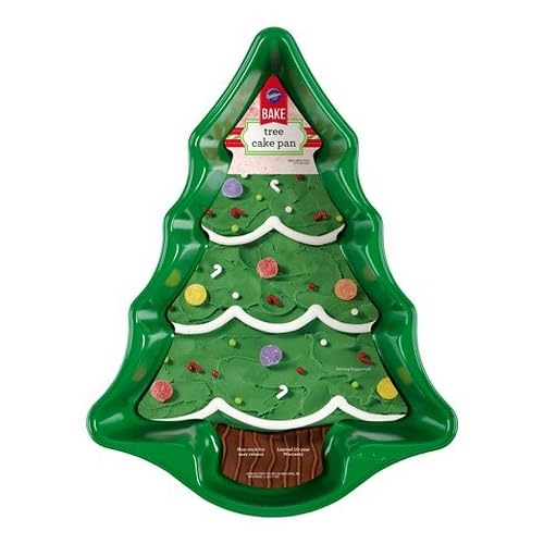 avid bakers find themselves in this predicament frequently and can attest to the fact that having a safe transportation container is key! the Bundt cake keeper is the perfect solution to this age-old problem. Place your freshly-baked Bundt cake inside, set the cover on top and twist to lock the cake safely inside. You're now ready for transportation to and from a party. Best of all, the cake keeper will keep your cakes fresh and looks great sitting on your countertop. The cake keeper is very durable and can be put through your dishwasher for simple cleanup. Base comes in assorted colors. BPA- and melamine-free plastic.the Wilton Christmas Tree Cake Pan Spoon the batter into the pan slowly to prevent the formation of air bubbles. Tap the pan 3 times gently on a work surface to release any bubbles that may have developed and ensure the batter reaches all crevices in the design. Using a rubber or silicone spatula, spread the batter so the sides are slightly higher than the center. The cake will bake more evenly and be less likely to form peaks.Our beloved Bundts are produced with lots of hand touch and care, ensuring that they will last for a lifetime. We've perfected this process over the past seven decades--there is a lot of science behind created the best Bundts on earth! At the die casting facility, molten aluminum at temperatures of over 1200 degrees F is ladled into a chamber where an arm rapidly pushes the liquid aluminum into the die (mold). This takes place in a fraction of a second, and the aluminum solidifies as it hits the cooler mold. The two halves of the mold open up, releasing a very hot but solid aluminum Bundt pan.Wilton Christmas Tree Cake Pan is best for youWilton® Christmas Tree Cake Pan Use the Christmas Tree Cake Pan to bake a beautiful holiday cake that will be the star of the sweet table. Non-stick Christmas tree-shaped cake pan bakes easy-to-decorate detail into the cake. Trace the baked in branch edges to create an easy garland. Uses one cake mix! Christmas Tree Shaped Cake Pan Uses one cake mix Non-stick for easy release Top-rack dishwasher safe ||Number of Pieces: 1 ||Set Includes: Cake Pan ||Used For: cakes ||Pan-Sheet Material: Metal ||Care and Cleaning: Dishwasher-safe ||Dimensions: 14.250H x 10.800W x 1.950D ||Weight: .790 ||Made in the USA or Imported