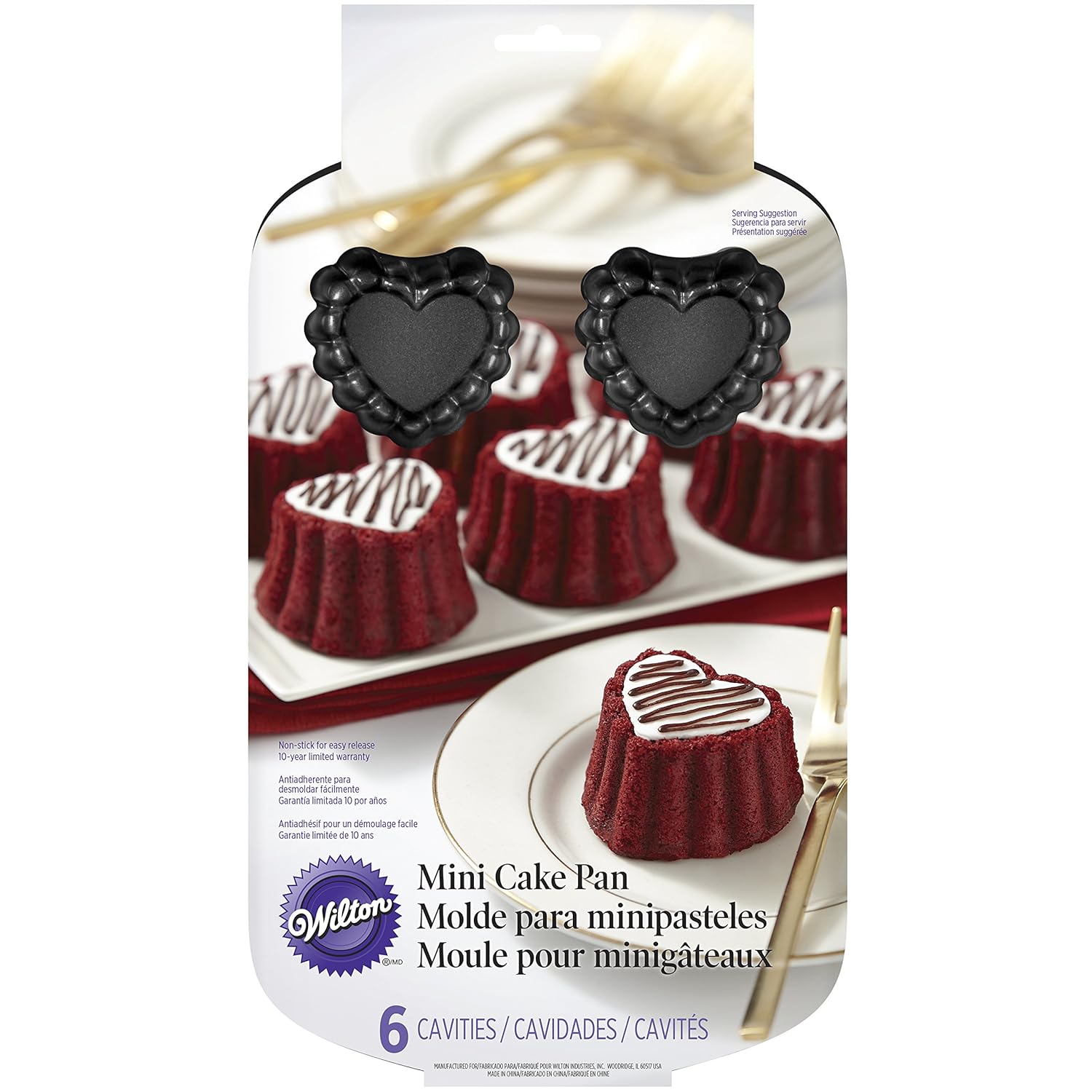 avid bakers find themselves in this predicament frequently and can attest to the fact that having a safe transportation container is key! the Bundt cake keeper is the perfect solution to this age-old problem. Place your freshly-baked Bundt cake inside, set the cover on top and twist to lock the cake safely inside. You're now ready for transportation to and from a party. Best of all, the cake keeper will keep your cakes fresh and looks great sitting on your countertop. The cake keeper is very durable and can be put through your dishwasher for simple cleanup. Base comes in assorted colors. BPA- and melamine-free plastic.the Wilton 2105-0771 Valentine Nonstick 6-Cavity Ruffled Heart Mini Cake Pan Spoon the batter into the pan slowly to prevent the formation of air bubbles. Tap the pan 3 times gently on a work surface to release any bubbles that may have developed and ensure the batter reaches all crevices in the design. Using a rubber or silicone spatula, spread the batter so the sides are slightly higher than the center. The cake will bake more evenly and be less likely to form peaks.Our beloved Bundts are produced with lots of hand touch and care, ensuring that they will last for a lifetime. We've perfected this process over the past seven decades--there is a lot of science behind created the best Bundts on earth! At the die casting facility, molten aluminum at temperatures of over 1200 degrees F is ladled into a chamber where an arm rapidly pushes the liquid aluminum into the die (mold). This takes place in a fraction of a second, and the aluminum solidifies as it hits the cooler mold. The two halves of the mold open up, releasing a very hot but solid aluminum Bundt pan.Wilton 2105-0771 Valentine Nonstick 6-Cavity Ruffled Heart Mini Cake Pan is best for youCreate beautifully single serving holiday cakes or molded desserts. also a beautiful way to celebrate showers, weddings and more. wilton bake ware is dishwasher safe; however, for best results, hand wash in warm, soapy water before first and after each use. superior non-stick performance.