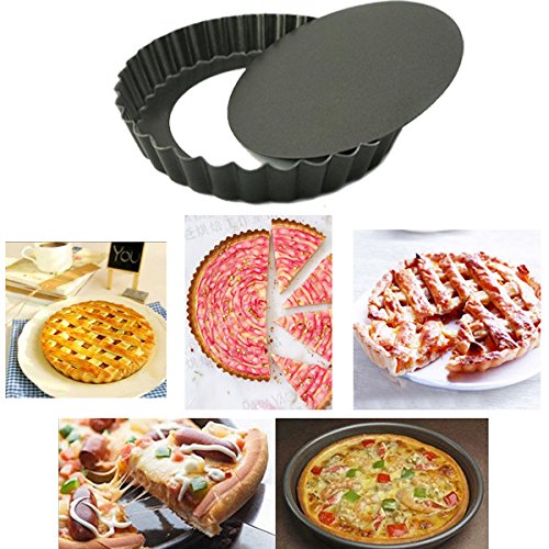 avid bakers find themselves in this predicament frequently and can attest to the fact that having a safe transportation container is key! the Bundt cake keeper is the perfect solution to this age-old problem. Place your freshly-baked Bundt cake inside, set the cover on top and twist to lock the cake safely inside. You're now ready for transportation to and from a party. Best of all, the cake keeper will keep your cakes fresh and looks great sitting on your countertop. The cake keeper is very durable and can be put through your dishwasher for simple cleanup. Base comes in assorted colors. BPA- and melamine-free plastic.the Non-stick Pizza Pan Mold 8 Inch 9 Inch Drop Battom Cake Pizza Baking Pans Mould Spoon the batter into the pan slowly to prevent the formation of air bubbles. Tap the pan 3 times gently on a work surface to release any bubbles that may have developed and ensure the batter reaches all crevices in the design. Using a rubber or silicone spatula, spread the batter so the sides are slightly higher than the center. The cake will bake more evenly and be less likely to form peaks.Our beloved Bundts are produced with lots of hand touch and care, ensuring that they will last for a lifetime. We've perfected this process over the past seven decades--there is a lot of science behind created the best Bundts on earth! At the die casting facility, molten aluminum at temperatures of over 1200 degrees F is ladled into a chamber where an arm rapidly pushes the liquid aluminum into the die (mold). This takes place in a fraction of a second, and the aluminum solidifies as it hits the cooler mold. The two halves of the mold open up, releasing a very hot but solid aluminum Bundt pan.Non-stick Pizza Pan Mold 8 Inch 9 Inch Drop Battom Cake Pizza Baking Pans Mould is best for youPerfect for making all kinds of delicious cakes, pizzas, pies and so on Specification: Product Name: Non-stick Pizza Pan Material: Aluminium Alloy Size: 8 Inch, 9 Inch Package Includes: 1 x Non-stick Pizza Pan