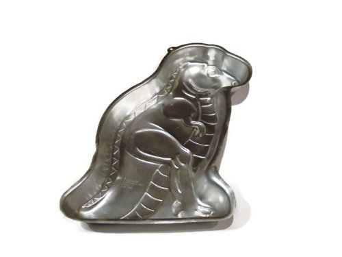 avid bakers find themselves in this predicament frequently and can attest to the fact that having a safe transportation container is key! the Bundt cake keeper is the perfect solution to this age-old problem. Place your freshly-baked Bundt cake inside, set the cover on top and twist to lock the cake safely inside. You're now ready for transportation to and from a party. Best of all, the cake keeper will keep your cakes fresh and looks great sitting on your countertop. The cake keeper is very durable and can be put through your dishwasher for simple cleanup. Base comes in assorted colors. BPA- and melamine-free plastic.the Wilton PARTYSAURUS Cake Pan (#2105-1280) Retired 1987 ~ Includes Re-Printed Color Instruction Sheet ~ 5 Disposable Pastry Bags ~ Decorative Icing Practice sheets. Spoon the batter into the pan slowly to prevent the formation of air bubbles. Tap the pan 3 times gently on a work surface to release any bubbles that may have developed and ensure the batter reaches all crevices in the design. Using a rubber or silicone spatula, spread the batter so the sides are slightly higher than the center. The cake will bake more evenly and be less likely to form peaks.Our beloved Bundts are produced with lots of hand touch and care, ensuring that they will last for a lifetime. We've perfected this process over the past seven decades--there is a lot of science behind created the best Bundts on earth! At the die casting facility, molten aluminum at temperatures of over 1200 degrees F is ladled into a chamber where an arm rapidly pushes the liquid aluminum into the die (mold). This takes place in a fraction of a second, and the aluminum solidifies as it hits the cooler mold. The two halves of the mold open up, releasing a very hot but solid aluminum Bundt pan.Wilton PARTYSAURUS Cake Pan (#2105-1280) Retired 1987 ~ Includes Re-Printed Color Instruction Sheet ~ 5 Disposable Pastry Bags ~ Decorative Icing Practice sheets. is best for youThis is JUST the vtg pan and no other instructions, etc.