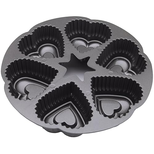 avid bakers find themselves in this predicament frequently and can attest to the fact that having a safe transportation container is key! the Bundt cake keeper is the perfect solution to this age-old problem. Place your freshly-baked Bundt cake inside, set the cover on top and twist to lock the cake safely inside. You're now ready for transportation to and from a party. Best of all, the cake keeper will keep your cakes fresh and looks great sitting on your countertop. The cake keeper is very durable and can be put through your dishwasher for simple cleanup. Base comes in assorted colors. BPA- and melamine-free plastic.the Dimensions Cake Pan-6 Cavity Heart 4x2 Spoon the batter into the pan slowly to prevent the formation of air bubbles. Tap the pan 3 times gently on a work surface to release any bubbles that may have developed and ensure the batter reaches all crevices in the design. Using a rubber or silicone spatula, spread the batter so the sides are slightly higher than the center. The cake will bake more evenly and be less likely to form peaks.Our beloved Bundts are produced with lots of hand touch and care, ensuring that they will last for a lifetime. We've perfected this process over the past seven decades--there is a lot of science behind created the best Bundts on earth! At the die casting facility, molten aluminum at temperatures of over 1200 degrees F is ladled into a chamber where an arm rapidly pushes the liquid aluminum into the die (mold). This takes place in a fraction of a second, and the aluminum solidifies as it hits the cooler mold. The two halves of the mold open up, releasing a very hot but solid aluminum Bundt pan.Dimensions Cake Pan-6 Cavity Heart 4x2 is best for youW5012 Features: -Heart dimesions: 3.88' W x 3.88' D. -Create beautifully detailed cakes, frozen desserts and appetizers. Color: -Black. Holiday Theme: -Yes. Holiday: -Valentine's Day. Material: -Aluminum. Dimensions: Overall Height - Top to Bottom: -11.47'. Overall Width - Side to Side: -11.47'. Overall Depth - Front to Back: -2.24'. Overall Product Weight: -2 lbs.