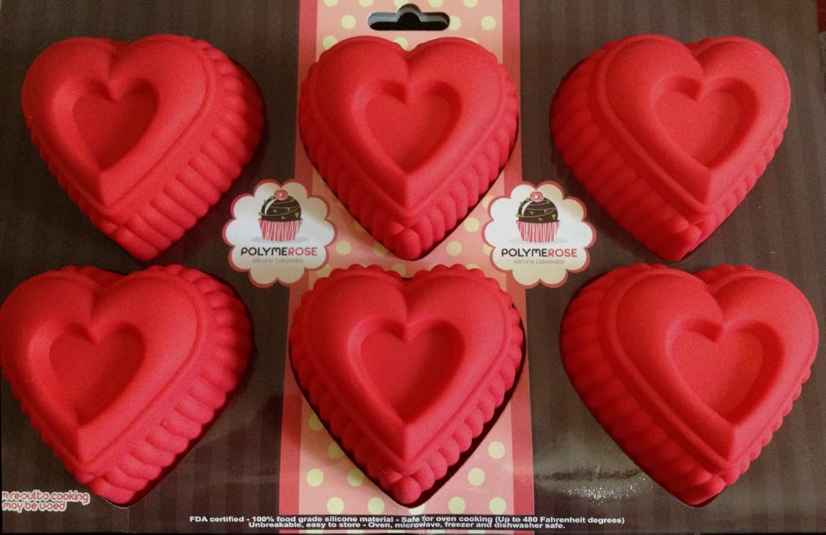 • The Polymerose 6 Cavity Silicone Ruffled HEARTS Pan for Desserts and Cakes is a