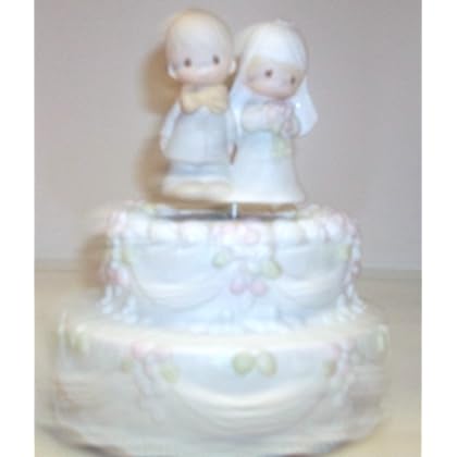 avid bakers find themselves in this predicament frequently and can attest to the fact that having a safe transportation container is key! the Bundt cake keeper is the perfect solution to this age-old problem. Place your freshly-baked Bundt cake inside, set the cover on top and twist to lock the cake safely inside. You're now ready for transportation to and from a party. Best of all, the cake keeper will keep your cakes fresh and looks great sitting on your countertop. The cake keeper is very durable and can be put through your dishwasher for simple cleanup. Base comes in assorted colors. BPA- and melamine-free plastic.the Precious Moments Wedding Cake Music Box Spoon the batter into the pan slowly to prevent the formation of air bubbles. Tap the pan 3 times gently on a work surface to release any bubbles that may have developed and ensure the batter reaches all crevices in the design. Using a rubber or silicone spatula, spread the batter so the sides are slightly higher than the center. The cake will bake more evenly and be less likely to form peaks.Our beloved Bundts are produced with lots of hand touch and care, ensuring that they will last for a lifetime. We've perfected this process over the past seven decades--there is a lot of science behind created the best Bundts on earth! At the die casting facility, molten aluminum at temperatures of over 1200 degrees F is ladled into a chamber where an arm rapidly pushes the liquid aluminum into the die (mold). This takes place in a fraction of a second, and the aluminum solidifies as it hits the cooler mold. The two halves of the mold open up, releasing a very hot but solid aluminum Bundt pan.Precious Moments Wedding Cake Music Box is best for youCute Wedding moment!