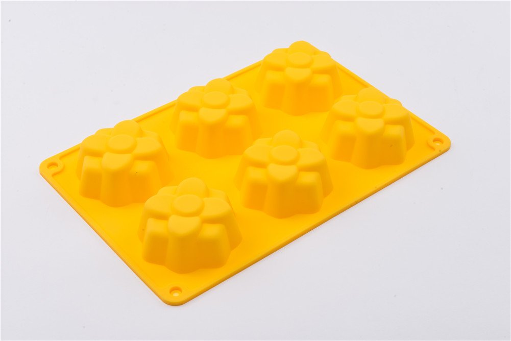 • The 6 Cavity Flower Shape Silicone Food Grade Cake Pudding Jelly Ice Soap Mold for Homemade Products is a