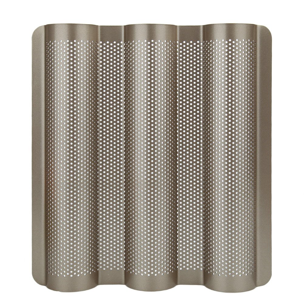 • The Whitelotous 3 Gutters Non-stick Perforated Baguette Pan French Bread Pan Wave Loaf Bake Mold - Champagne is a