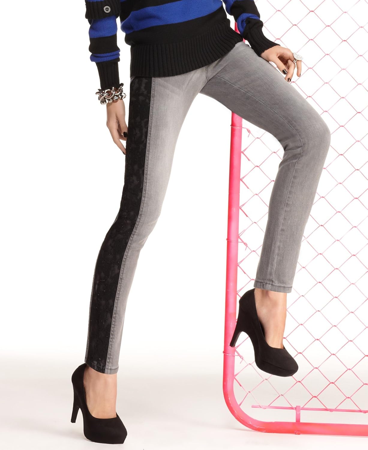 • The Material Girl skinny leg lace trim jeans vogue wash gray 1 is a