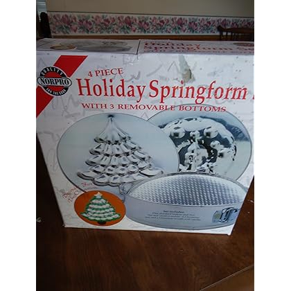 avid bakers find themselves in this predicament frequently and can attest to the fact that having a safe transportation container is key! the Bundt cake keeper is the perfect solution to this age-old problem. Place your freshly-baked Bundt cake inside, set the cover on top and twist to lock the cake safely inside. You're now ready for transportation to and from a party. Best of all, the cake keeper will keep your cakes fresh and looks great sitting on your countertop. The cake keeper is very durable and can be put through your dishwasher for simple cleanup. Base comes in assorted colors. BPA- and melamine-free plastic.the NorPro 4 piece Holiday 10" Springform Set - 3 Removable Bottoms - Christmas Tree, Wreath & Plain Spoon the batter into the pan slowly to prevent the formation of air bubbles. Tap the pan 3 times gently on a work surface to release any bubbles that may have developed and ensure the batter reaches all crevices in the design. Using a rubber or silicone spatula, spread the batter so the sides are slightly higher than the center. The cake will bake more evenly and be less likely to form peaks.Our beloved Bundts are produced with lots of hand touch and care, ensuring that they will last for a lifetime. We've perfected this process over the past seven decades--there is a lot of science behind created the best Bundts on earth! At the die casting facility, molten aluminum at temperatures of over 1200 degrees F is ladled into a chamber where an arm rapidly pushes the liquid aluminum into the die (mold). This takes place in a fraction of a second, and the aluminum solidifies as it hits the cooler mold. The two halves of the mold open up, releasing a very hot but solid aluminum Bundt pan.NorPro 4 piece Holiday 10" Springform Set - 3 Removable Bottoms - Christmas Tree, Wreath & Plain is best for you