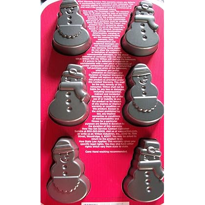 avid bakers find themselves in this predicament frequently and can attest to the fact that having a safe transportation container is key! the Bundt cake keeper is the perfect solution to this age-old problem. Place your freshly-baked Bundt cake inside, set the cover on top and twist to lock the cake safely inside. You're now ready for transportation to and from a party. Best of all, the cake keeper will keep your cakes fresh and looks great sitting on your countertop. The cake keeper is very durable and can be put through your dishwasher for simple cleanup. Base comes in assorted colors. BPA- and melamine-free plastic.the Wilton Christmas 6 Cavity Mini Cakes Pan Spoon the batter into the pan slowly to prevent the formation of air bubbles. Tap the pan 3 times gently on a work surface to release any bubbles that may have developed and ensure the batter reaches all crevices in the design. Using a rubber or silicone spatula, spread the batter so the sides are slightly higher than the center. The cake will bake more evenly and be less likely to form peaks.Our beloved Bundts are produced with lots of hand touch and care, ensuring that they will last for a lifetime. We've perfected this process over the past seven decades--there is a lot of science behind created the best Bundts on earth! At the die casting facility, molten aluminum at temperatures of over 1200 degrees F is ladled into a chamber where an arm rapidly pushes the liquid aluminum into the die (mold). This takes place in a fraction of a second, and the aluminum solidifies as it hits the cooler mold. The two halves of the mold open up, releasing a very hot but solid aluminum Bundt pan.Wilton Christmas 6 Cavity Mini Cakes Pan is best for youMake molds of snowmen then decorate with different colored icings!