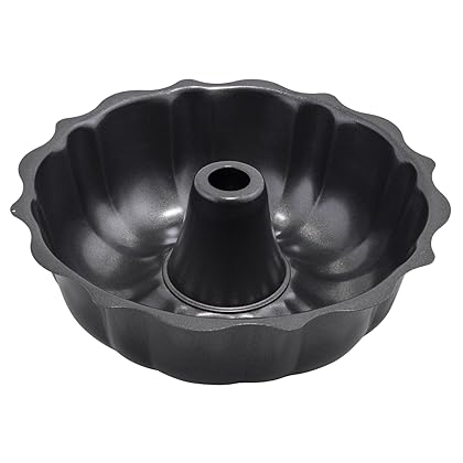 avid bakers find themselves in this predicament frequently and can attest to the fact that having a safe transportation container is key! the Bundt cake keeper is the perfect solution to this age-old problem. Place your freshly-baked Bundt cake inside, set the cover on top and twist to lock the cake safely inside. You're now ready for transportation to and from a party. Best of all, the cake keeper will keep your cakes fresh and looks great sitting on your countertop. The cake keeper is very durable and can be put through your dishwasher for simple cleanup. Base comes in assorted colors. BPA- and melamine-free plastic.the Winco CCP-10F 10" Non-stick Aluminized Carbon Steel Fluted Cake Pan Spoon the batter into the pan slowly to prevent the formation of air bubbles. Tap the pan 3 times gently on a work surface to release any bubbles that may have developed and ensure the batter reaches all crevices in the design. Using a rubber or silicone spatula, spread the batter so the sides are slightly higher than the center. The cake will bake more evenly and be less likely to form peaks.Our beloved Bundts are produced with lots of hand touch and care, ensuring that they will last for a lifetime. We've perfected this process over the past seven decades--there is a lot of science behind created the best Bundts on earth! At the die casting facility, molten aluminum at temperatures of over 1200 degrees F is ladled into a chamber where an arm rapidly pushes the liquid aluminum into the die (mold). This takes place in a fraction of a second, and the aluminum solidifies as it hits the cooler mold. The two halves of the mold open up, releasing a very hot but solid aluminum Bundt pan.Winco CCP-10F 10" Non-stick Aluminized Carbon Steel Fluted Cake Pan is best for youQuantum2 non-stick coating. Aluminized carbon steel. Ideal for making Bundt cakes. Dishwasher safe. Stackable for easy storage. Winco CCP-10F 10' Fluted Cake Pan, Non-stick, Aluminized Carbon Steel.