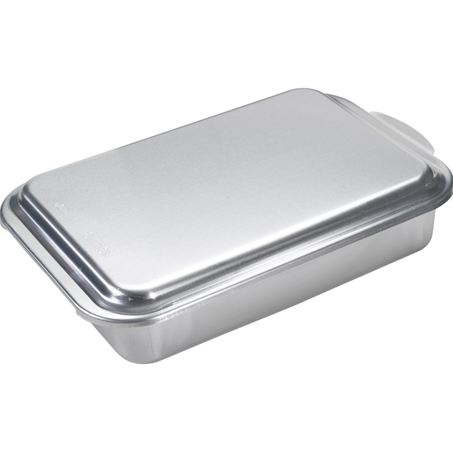 • The Nordic Ware Classic Metal 9x13 Covered Cake Pan is a