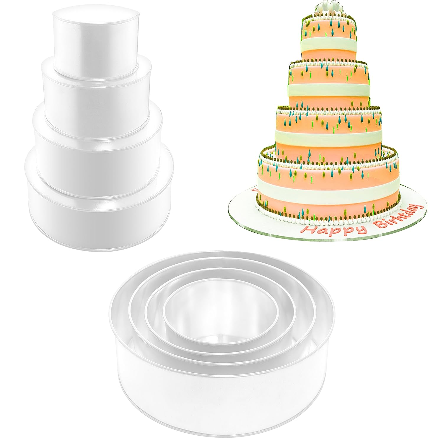 patent pending design allows bakers of any skill level to create a fillable hole into their favorite confectioneries! Just fill the pan with batter or dough and snap the Cuplette to the pan. Toss in the oven and get ready! In just a few minutes, you'll have a Cuplettes Creation with a fillable hole! Save room for more! Cuplettes are so much more than great cupcake making silicone bakeware! You can also use Cuplettes to create savory snacks and meals! By mixing and matching foods, the possibilities are endless with Cuplettes.the 4 Tier Round wedding cake pan 6", 8", 10" & 12" (extra deep 5") A timeless collection of classic designs, our heavyweight formed bakeware fits into every budget while delivering reliable baking results time after time. 10-Year Warranty.This professional weight formed metal bakeware is a wonderful addition to any kitchen. Non-stick coated, it allows for easy-release and effortless clean up. Designed for cheesecakes and other desserts the smooth locking mechanism and tight seal make this pan simple to use. Reliable and long lasting. 10 cup capacity.4 Tier Round wedding cake pan 6", 8", 10" & 12" (extra deep 5") is best for youWhether you are professional baker or hobby enthusiast, you will be pleasantly amazed with the baking experience. The cake tins have been hand crafted and may have seam yet elegant, sturdy and unique. The accurate dimension makes it easy and swift to make a perfect multilayer wedding cake. However, the tins can be used for individual size cakes for birthday or other celebrations, or just use a few of the tins for any other number of tiers!