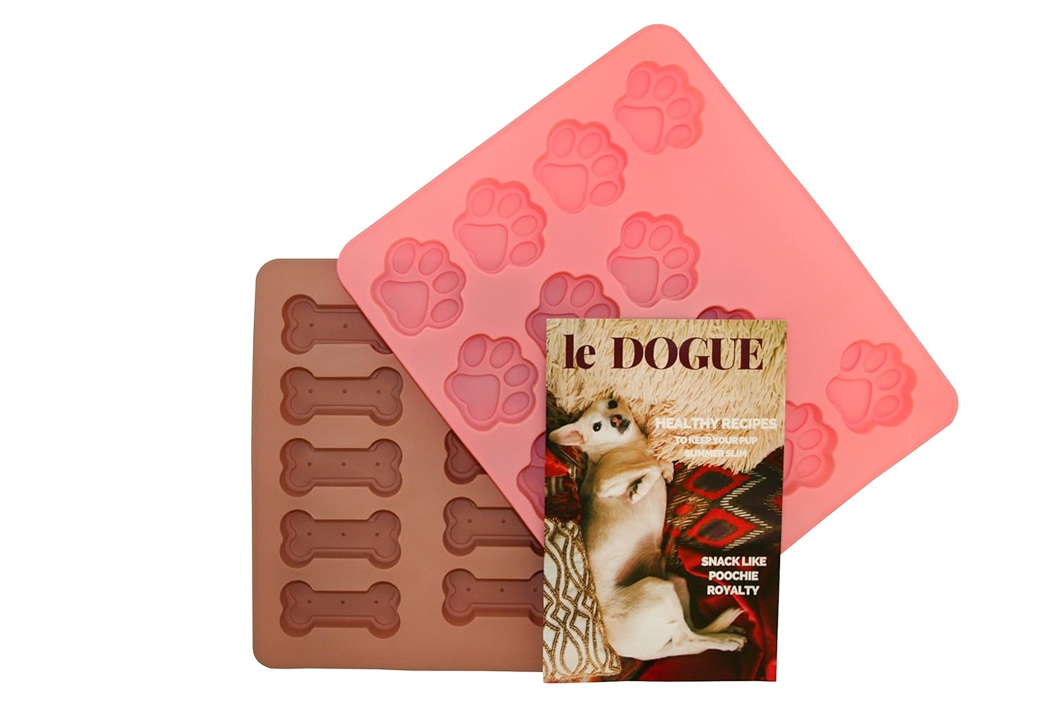 patent pending design allows bakers of any skill level to create a fillable hole into their favorite confectioneries! Just fill the pan with batter or dough and snap the Cuplette to the pan. Toss in the oven and get ready! In just a few minutes, you'll have a Cuplettes Creation with a fillable hole! Save room for more! Cuplettes are so much more than great cupcake making silicone bakeware! You can also use Cuplettes to create savory snacks and meals! By mixing and matching foods, the possibilities are endless with Cuplettes.the 2-Pack Food Grade Silicone Dog Paw and Bone Molds With Recipe Booklet A timeless collection of classic designs, our heavyweight formed bakeware fits into every budget while delivering reliable baking results time after time. 10-Year Warranty.This professional weight formed metal bakeware is a wonderful addition to any kitchen. Non-stick coated, it allows for easy-release and effortless clean up. Designed for cheesecakes and other desserts the smooth locking mechanism and tight seal make this pan simple to use. Reliable and long lasting. 10 cup capacity.2-Pack Food Grade Silicone Dog Paw and Bone Molds With Recipe Booklet is best for youPackage Quantity:2 | Color:Pink/Beige THE ULTIMATE ACCESSORY FOR DOG LOVERS Get CreativeLe Dogue cook booklet has several nutritious and delicious recipes and it also has a page on how to design your own recipes! So you can make our carefully selected treats or you can design your own! Healthy and Delicious Our recipes were designed with your dogs health in mind. We even have a page dedicated to things your dog should avoid. But best of all, once your dog tastes one of your home made treats it will be love at first bite! Show Your Dog Some Love No more bland, expensive and unhealthy store bought snacks! You can now make your pet's treats exactly the way they like them! Talk of the Party With these fun forms you can bake treats for all your four legged and two legged friends and these also make great, memorable gifts! Polite, quick and timely customer serviceIf you have any questions or concerns just reach out and we will be happy to help! Lifetime Guarantee We stand behind our product because we know that you will love it. If you are ever unsatisfied, just let us know and we will be happy to fix it! Why Wait? Let Le Dogue show your pet just how much you care! Click The 'ADD TO CART' Button Now!