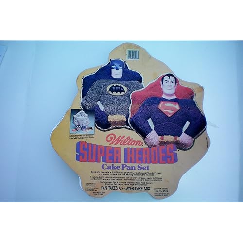 patent pending design allows bakers of any skill level to create a fillable hole into their favorite confectioneries! Just fill the pan with batter or dough and snap the Cuplette to the pan. Toss in the oven and get ready! In just a few minutes, you'll have a Cuplettes Creation with a fillable hole! Save room for more! Cuplettes are so much more than great cupcake making silicone bakeware! You can also use Cuplettes to create savory snacks and meals! By mixing and matching foods, the possibilities are endless with Cuplettes.the Wilton Superman Batman Super Hero Cake Pan (502-1212, 1977) Retired A timeless collection of classic designs, our heavyweight formed bakeware fits into every budget while delivering reliable baking results time after time. 10-Year Warranty.This professional weight formed metal bakeware is a wonderful addition to any kitchen. Non-stick coated, it allows for easy-release and effortless clean up. Designed for cheesecakes and other desserts the smooth locking mechanism and tight seal make this pan simple to use. Reliable and long lasting. 10 cup capacity.Wilton Superman Batman Super Hero Cake Pan (502-1212, 1977) Retired is best for youThis large pan takes a 2-layer mix. Baking instructions included.