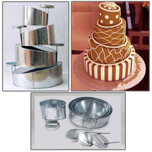 You buy Euro Tins multi layer cake pans Topsy Turvy Round 4 tier wedding cake pan - cake tin set with detachable standwith Coupon : MOU30 will be discounted 30% price