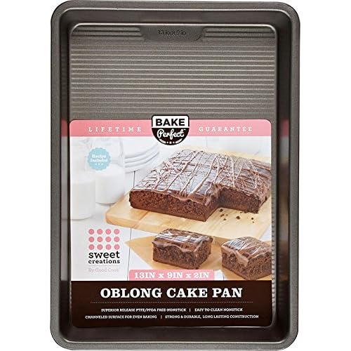 patent pending design allows bakers of any skill level to create a fillable hole into their favorite confectioneries! Just fill the pan with batter or dough and snap the Cuplette to the pan. Toss in the oven and get ready! In just a few minutes, you'll have a Cuplettes Creation with a fillable hole! Save room for more! Cuplettes are so much more than great cupcake making silicone bakeware! You can also use Cuplettes to create savory snacks and meals! By mixing and matching foods, the possibilities are endless with Cuplettes.the Sweet Creations Bake Perfect Oblong Cake Pan, 13 x 9", Silver A timeless collection of classic designs, our heavyweight formed bakeware fits into every budget while delivering reliable baking results time after time. 10-Year Warranty.This professional weight formed metal bakeware is a wonderful addition to any kitchen. Non-stick coated, it allows for easy-release and effortless clean up. Designed for cheesecakes and other desserts the smooth locking mechanism and tight seal make this pan simple to use. Reliable and long lasting. 10 cup capacity.Sweet Creations Bake Perfect Oblong Cake Pan, 13 x 9", Silver is best for youBake Perfect with Sweet Creations. These pans have a channeled surface design, promoting excellent airflow for even baking. Thanks to its PTFE/PFOA free nonstick, release and cleanup is a breeze. Durable, long lasting, lifetime guarantee, makes this a great pan for all your daily baking needs. Oblong Cake pan is 13'x9'x2'.